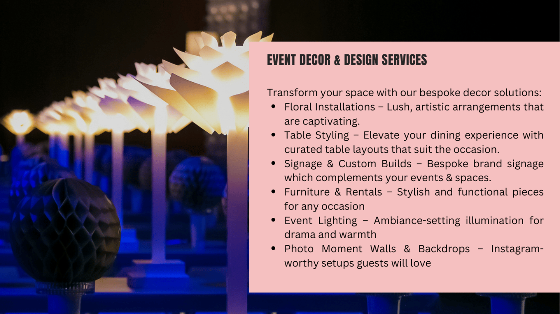 Bespoke brand signage that complements your events and spaces seamlessly.